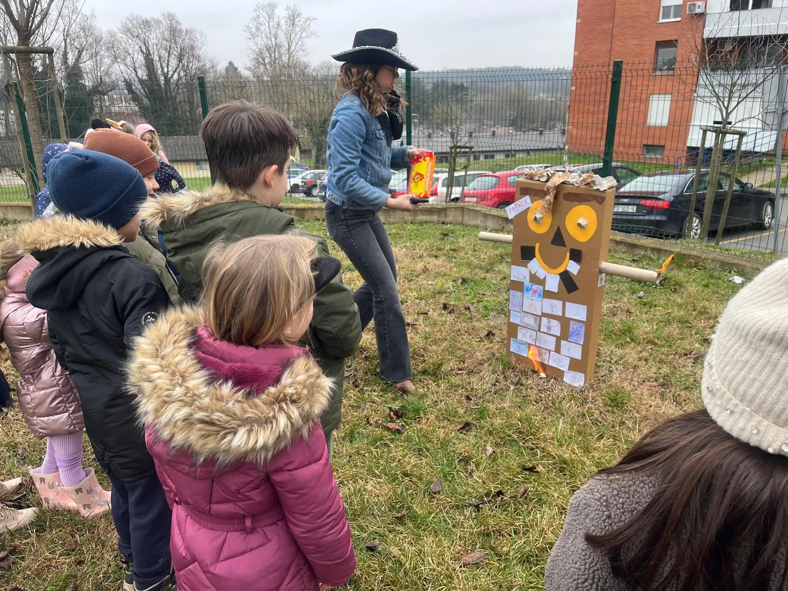 Fašničko slavlje završilo je tradicionalnim paljenjem fašnika na vrtićkom dvorištu. Fašnika su djeca izradila od pedagoški neoblikovanog materijala, koristeći razne kartone, tuljce i papir za pakiranje. Djeca su zajedno s odgojiteljicama tradicionalno zapalila fašnika te su svoje strahove i brige simbolično poslali u zaborav. 🎭🔥